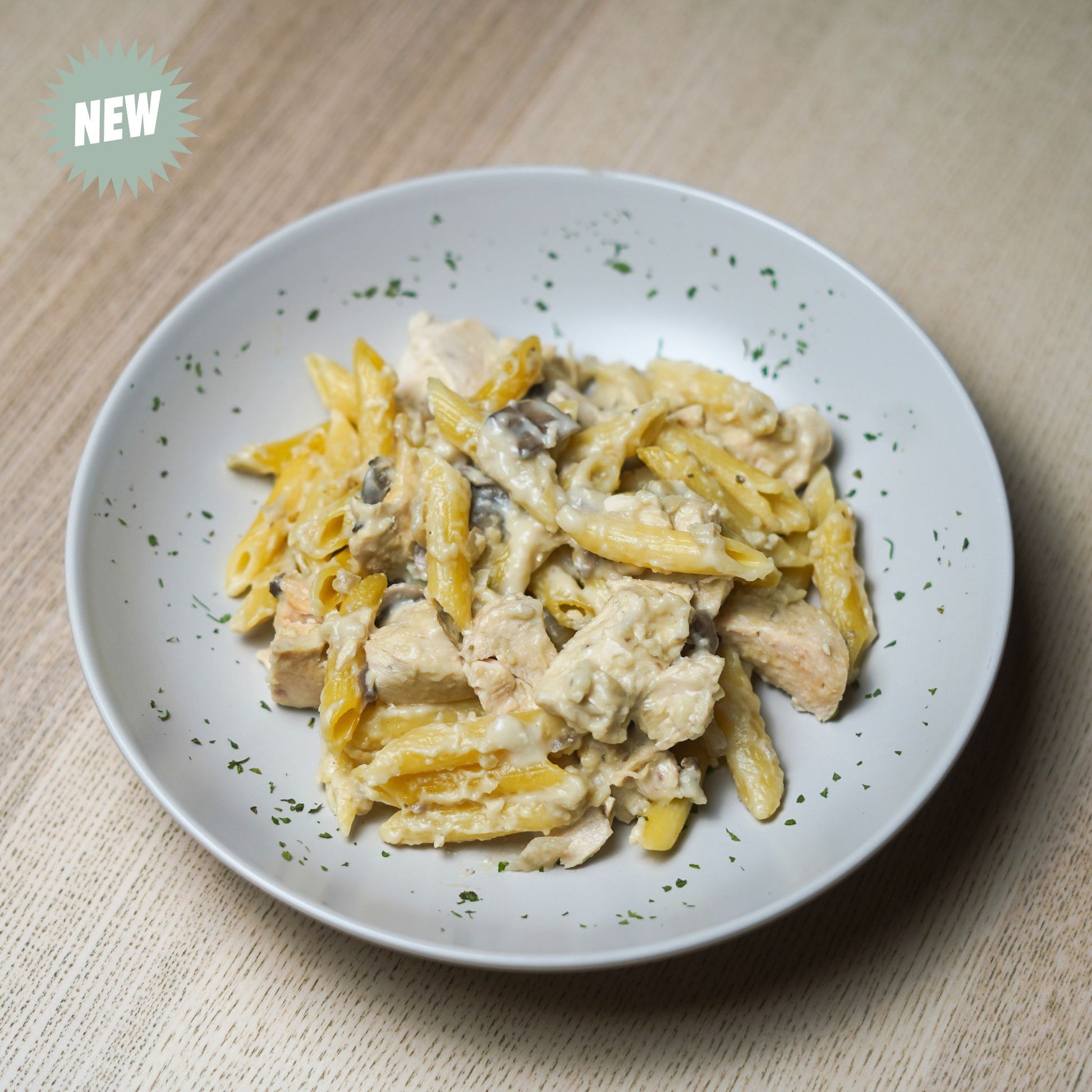 Tender chicken breast and mushrooms tossed in a silky sauce - a protein packed, nutrient dense pasta favourite!